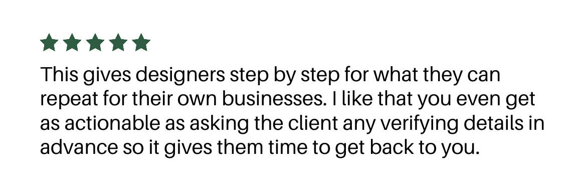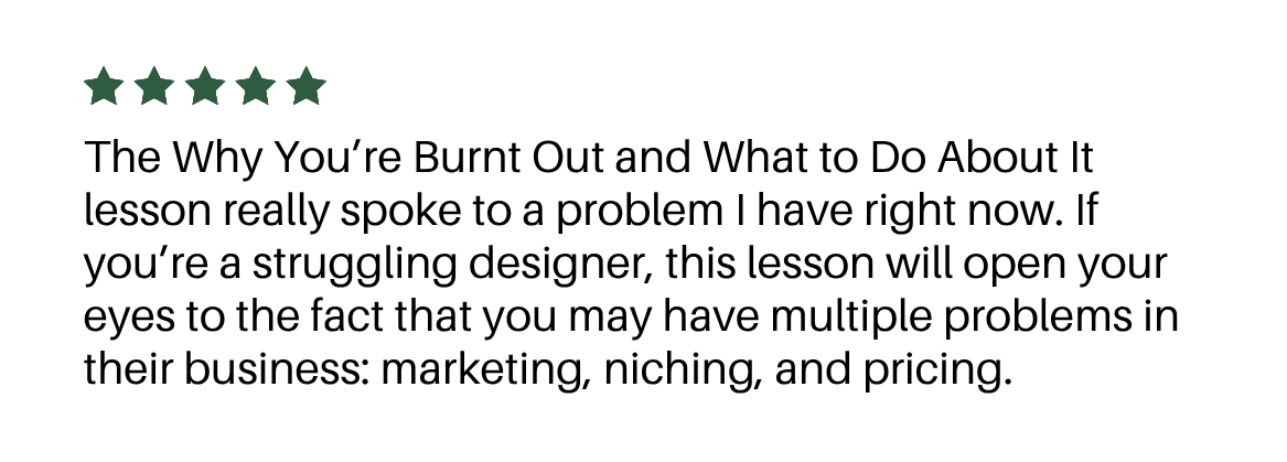 When you begin applying the strategies from this course—whether refining your offer, streamlining your client workflow, or implementing targeted marketing tactics—you’ll start to notice positive changes. That said, the most significant results come when you fully commit to each lesson. Every designer’s business is unique, so while I can’t promise a specific timeline, consistent action will drive real results.